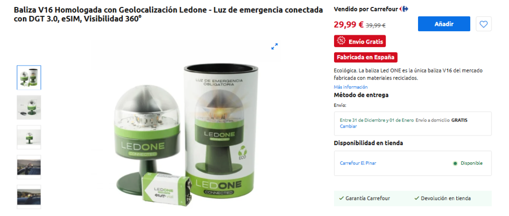 Las balizas V16 con geolocalización conectadas a la DGT 3.0 sustituirán definitivamente a los triángulos de emergencia, y su uso será obligatorio en España en muy pocos días. Por ello, cada vez más conductores buscan comprar una baliza V16 homologada, fiable y con conexión oficial, y Carrefour se ha convertido en uno de los comercios de referencia para adquirirlas con garantía y envío rápido.