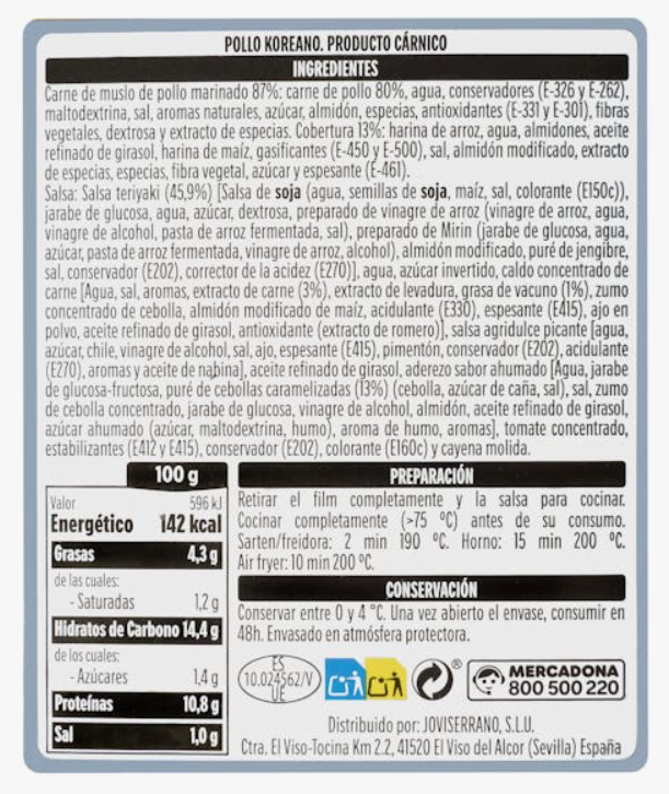 Si estás buscando pollo koreano de Mercadona cerca de mí, este producto es una opción muy interesante para quienes quieren probar sabores diferentes sin complicarse en la cocina. Se encuentra habitualmente en la sección de refrigerados y destaca por su salsa intensa y su carne ya marinada, lista para cocinar en pocos minutos.