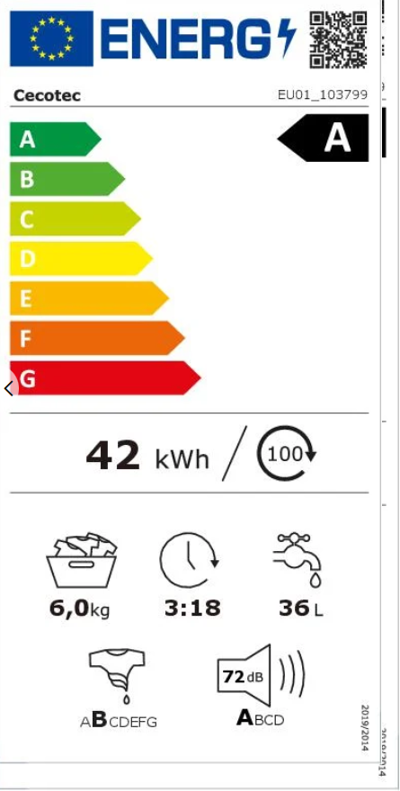Este modelo cuenta con clasificación energética A, una de las mejores dentro de su categoría.