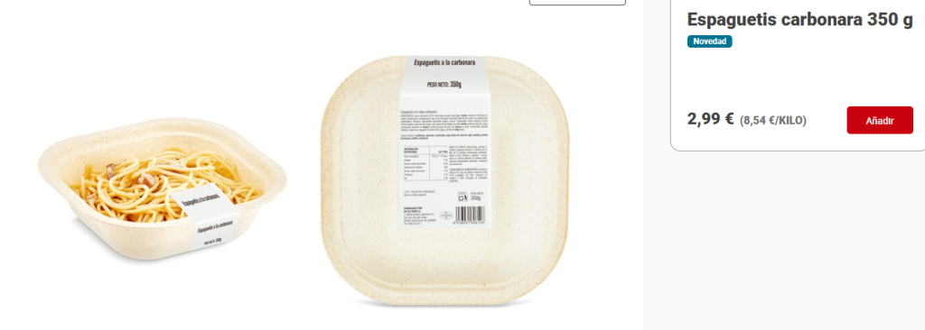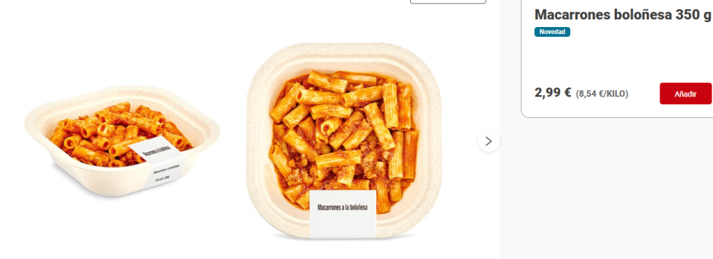 | Macarrones boloñesa | 350 g | 2,99 € | Pasta |
