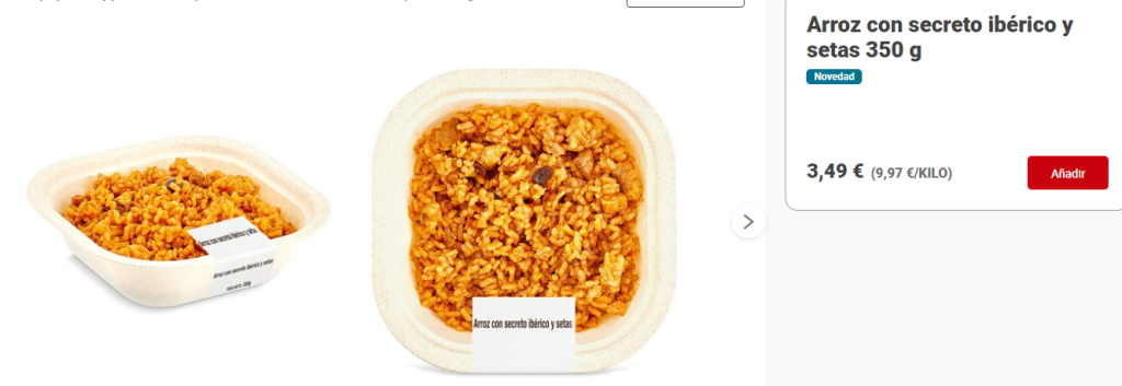 | Arroz con secreto ibérico y setas | 350 g | 3,49 € | Arroz |