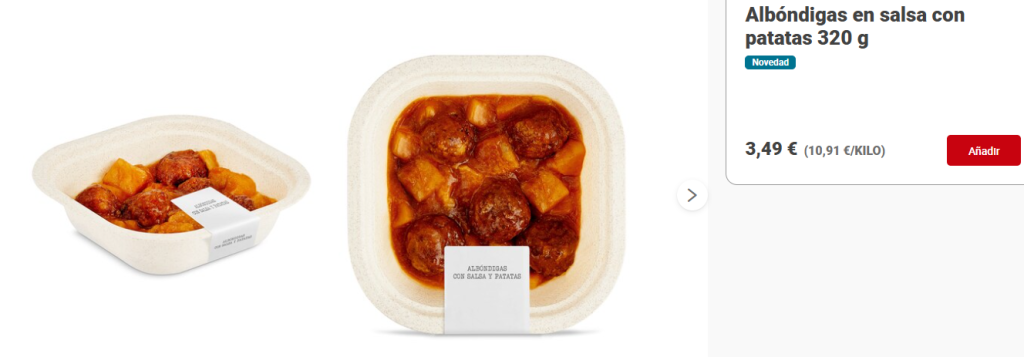 | Albóndigas con patatas | 320 g | 3,49 € | Carne |
