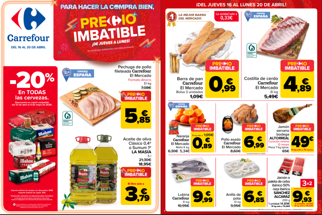 El nuevo catálogo de Precios Imbatibles de Carrefour ya está disponible y trae descuentos muy interesantes del jueves 16 al lunes 20 de abril de 2026.
