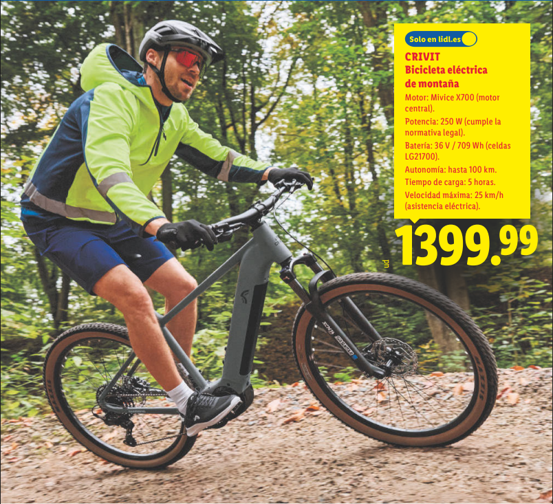 - Lidl apuesta por el deporte: bicicleta eléctrica de montaña CRIVIT que lo tiene todoLidl apuesta por el deporte: bicicleta eléctrica de montaña CRIVIT que lo tiene todo Lidl demuestra una vez más que no solo es sinónimo de alimentación y bazar barato. También se posiciona como una... Lee más: Lidl apuesta por el deporte: bicicleta eléctrica de montaña CRIVIT que lo tiene todo